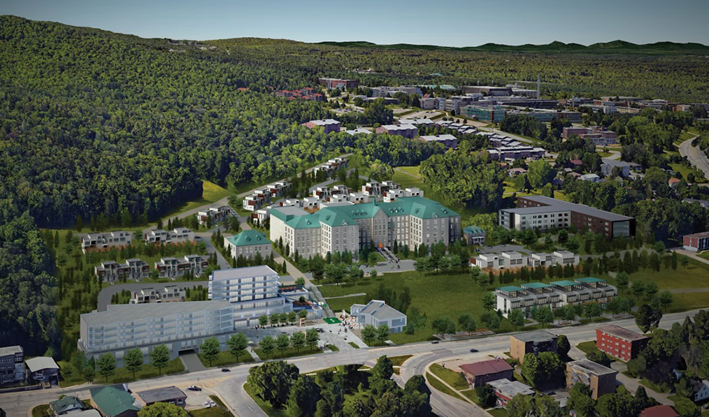 Projet de condos haut de gamme situé près du parc Jacques-Cartier à Sherbrooke. Le projet de 12 étages compte 91 unités.